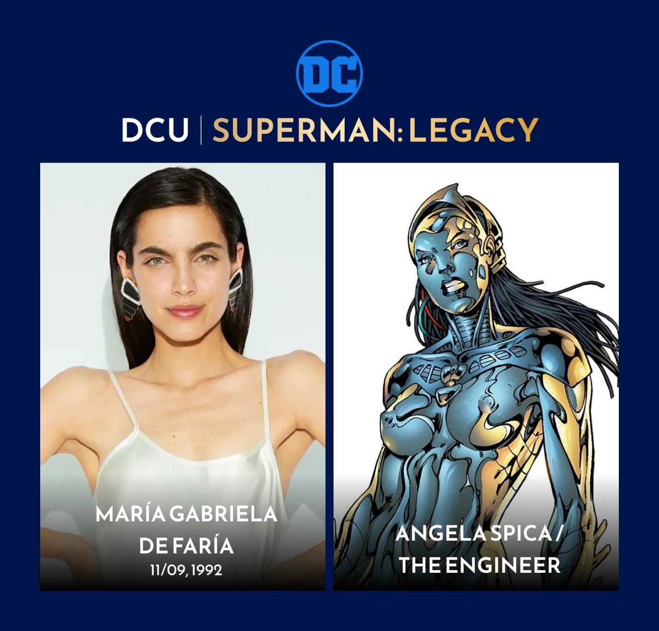 Tiếp theo đó, hồi giữa tháng 11, nữ diễn viên người Venezuela María Gabriela de Faría được thông báo đã tuyển chọn cho vai trò Angela Spica hay còn có biệt danh The Engineer. Nhân vật này là một thành phần quan trọng của nhóm The Authority, biệt đội đặc biệt chỉ mới xuất hiện vào đầu thế kỷ 21 trong truyện tranh DC.
