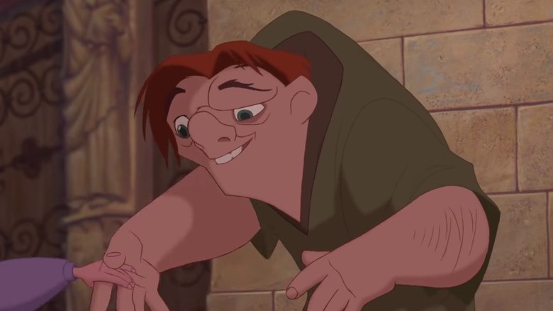 Dẫu vậy, khi nhìn vào hình hài đứa bé sơ sinh, Frollo khiếp sợ và có ý định ném nó xuống giếng. Hành động tội ác của ông ta bị phó tế phát hiện kịp thời và ngăn cản. Để lấp liếm, Frollo miễn cưỡng đồng ý nuôi đứa bé, đặt tên là Quasimodo tuy nhiên ông ta giấu đứa bé trong tháp chuông của nhà thờ và không cho cậu ta ra ngoài bởi lo ngại sẽ có người phát hiện ra hành động tàn ác trong quá khứ của mình.