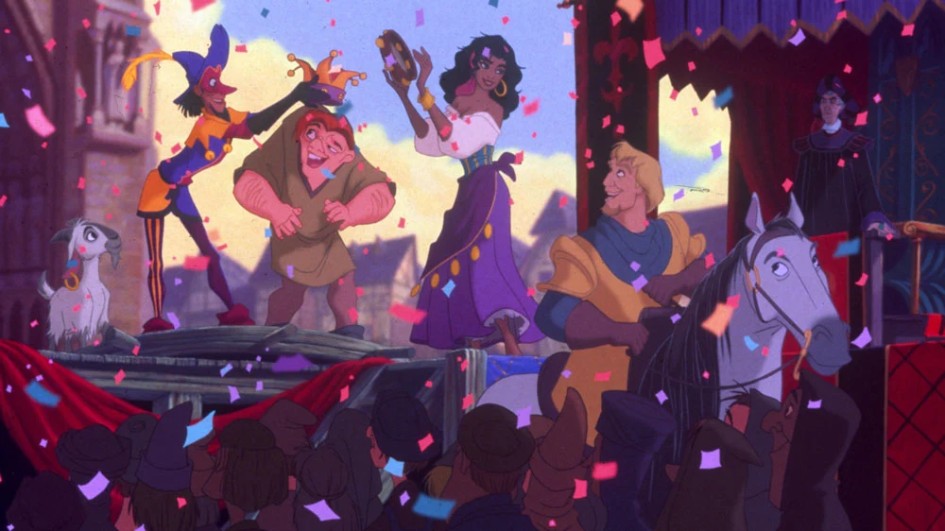 Trong nội dung bản hoạt hình của Disney, Thằng Gù Nhà Thờ Đức Bà lấy bối cảnh Paris thế kỷ 15. Ở đó, vào một đêm mưa tuyết lạnh lẽo, Giám mục Claude Frollo và quân lính của ông ta phát hiện hai vợ chồng người Romani đang cố gắng thâm nhập thành phố một cách bất hợp pháp. Khi người chồng bị bắt, người vợ cố gắng chạy thoát cùng với đứa trẻ mới sinh của họ trên tay. Tuy nhiên, cuộc truy đuổi vẫn tiếp tục và Frollo sau đó đã vô tình làm hại người phụ nữ khi giành lấy đứa trẻ.