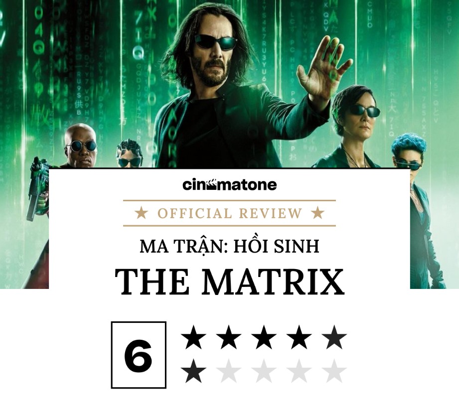 Cinematone đánh giá 6 trên 10 điểm cho The Matrix Resurrections. Độc giả quan tâm đến bộ phim có thể tham gia chấm điểm tại đây.