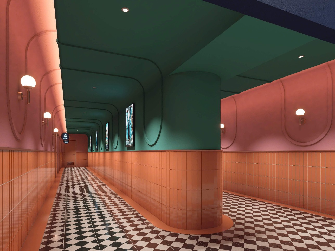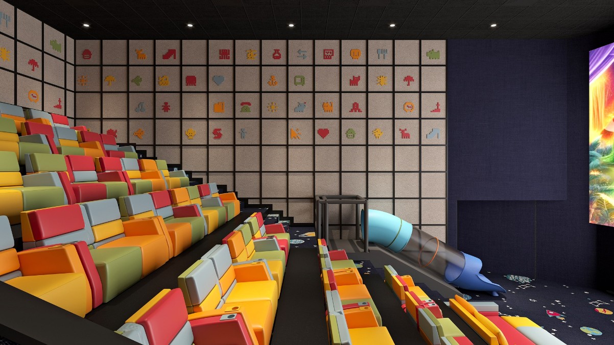 Không gian rạp chiếu rộng rãi, sang trọng với hệ thống sảnh chờ cao cấp và sàn lát đá sang trọng. Cụm rạp cũng có thêm các phòng chiếu chuyên biệt như phòng hạng thương gia với thiết kế ghế bọc da cao cấp, bàn dùng đồ uống và ghế đôi; phòng chiếu phim dành cho trẻ em với ghế nhiều sắc màu và máng trượt vui nhộn.
